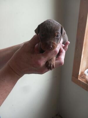 Almost 4 month old female miniature pinscher puppy. She’s our last girl left. UTD on shots. She’...