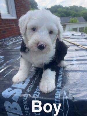 7 week old Sheepadoodle Pup. Handsome and Fluffy! Family raised, great with people and other animals...
