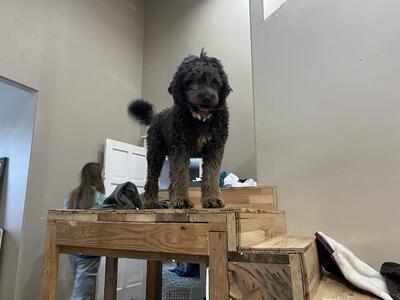 10 months old female Sheepadoodle puppy. She has 3 sets of shots. Up to date on rabies shot. I can d...