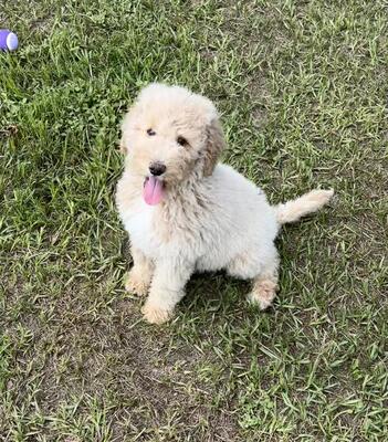 Sheepadoos.com anticipating 50 lb dogs at full size. Breeding program for patterning, low/no shed co...