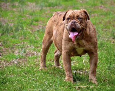 Charlie Brown is a chocolate trindle male IOEBA registered Olde English Bulldogge.