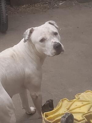 Powder is 15 months old very loving very playful slightly shy Pure White Colby dog both parents are ...