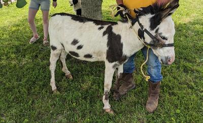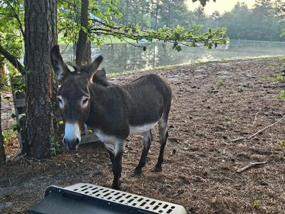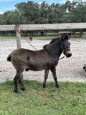 We have a chance for you to owe a gorgeous sweet mini mule he is gelded He is good with the farier...
