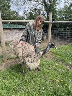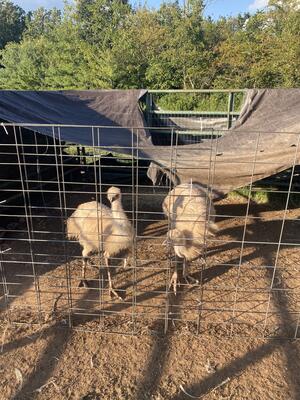 Emu is approximately 2 years. Friendly to us and most of our goats, but for some reason he picks on ...