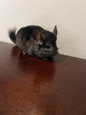 Medium ebony male chinchilla --RPA carrier-- Born 3/15/25 -- 9.5 months old�...