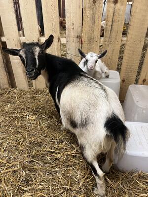 One is a Nigerian dwarf pygmy girl (spotted). The other is a full Nigerian Dwarf girl (all white). ...