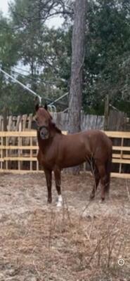 Sweet 2018 bay mare, bred for a 2026 foal. The mare is very sweet and has had kids on her back. She ...