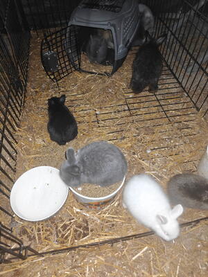 All gray babies. Medium fur and medium size. Rex / lion head crosses. Will only meet at Hill Rd Meij...
