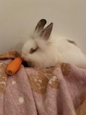 this is clover, a 2-year-old male lionhead bunny looking for a loving, responsible home. he’s very...