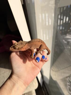 Hello I have a red base confetti Dalmatian male crested gecko his name is Pierre he is super sweet 8...