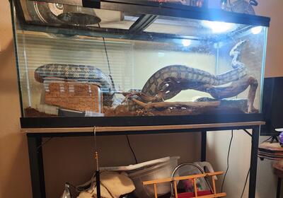 She comes with her enclosure 55 gallon open front and open top..she's 4 months old, she eats small m...