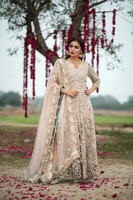 Step into elegance with our exquisite net maxi, adorned with dazzling crystal, intricate gota, betki...