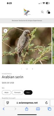 Have a peer of Arabian serin for sale ...