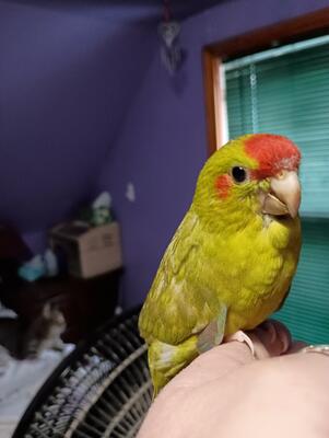 female kakariki chick - she has been hand fed and completely weaned -she is also handled often and w...
