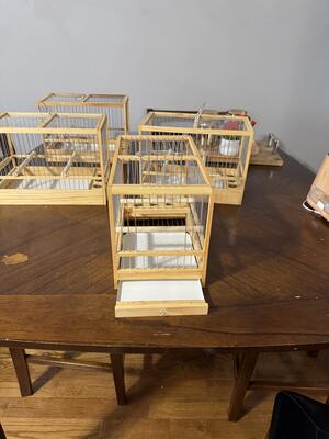 Song wood cages available. Cages made of cedar , pine and galvanized wire...