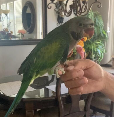 Indian Ringneck parrot. They are 2 months old. Just finished hand feed, Tamed. Friendly and healthy....