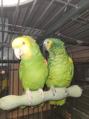Young 3/4 years old double yellow head amazon & yellow nape amazon. They have been together since t...