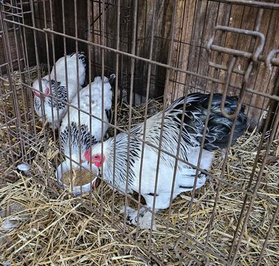 Beautiful LIGHT BRAHMA chickens! (8) AVAILABLE. (1) 1.5 yr old rooster, (3) 6 mo. old roosters, (...