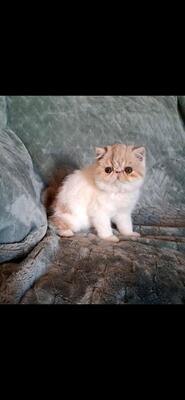 CFA Exotic Shorthair, cream and white female. This girl is going to be nice. Cobby body with beautif...