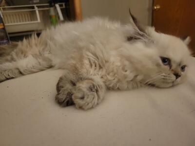 This is a Persian female born in 2020. Her name is B. She has had a few litters of kittens. She i...
