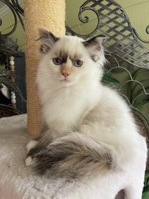 Three fourths Ragdoll! One female available. Mom is a blue point bicolor Ragamese and dad is a seal ...