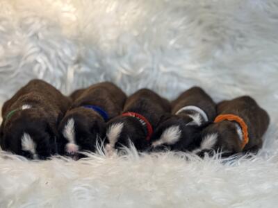 We are happy to announce that we have a sweet litter of five multigen F1B mini goldendoodle puppies ...
