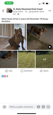 Bossy blood line raised in home with our children great temperament she is 2 yrs old and had 1 liter...