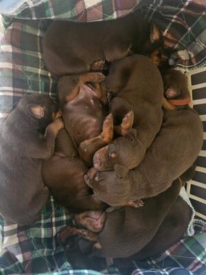 Doberman puppies born 11-6-2025. I have 5 males and 1 female left. Taking deposits now. Text for ...