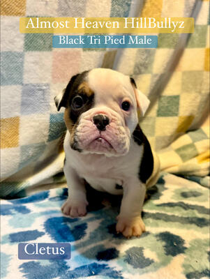 Cletus- Black Tri Piebald $2500 Almost Heaven HillBullyz has a stunning rainbow litter of Olde Eng...