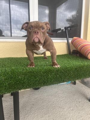 I have a black and white 14'inches tall american bully pocket female looking for new coach she has g...
