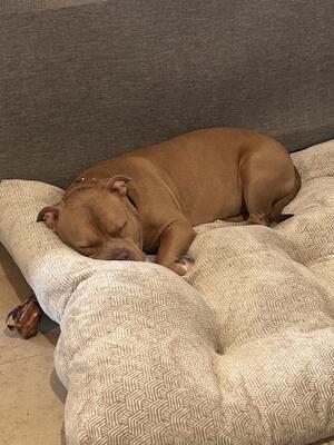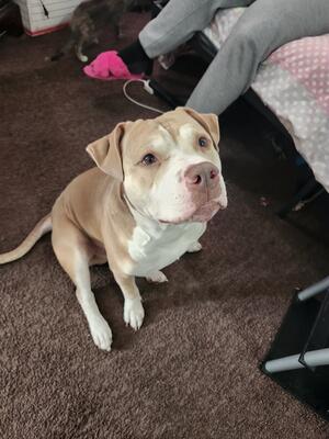 2 year old male bull terrier/pit bull needs a family