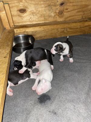 Liver tri color bull terrier pup, d.o.b.10/21/2024, ready for their new homes, serious inquiries onl...