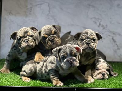 Meet our adorable 15 week-old Olde English Bulldogge puppies. F1 generation, both parents are under...