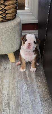 6 olde English Bulldogge puppies ready for homes 5 males 1 female Up to date on shots Dewormed...