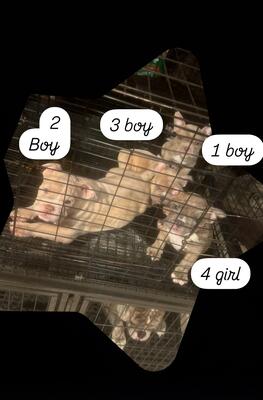 I have five puppies about five weeks old looking for a new home three boys and two girls for sell...