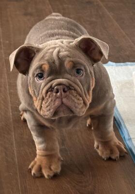 Akc male English bulldog lilac tri