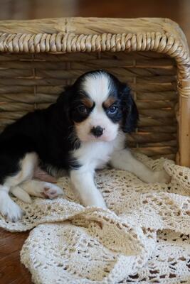Hey There, My name is Dylan! I am a very cute male Tri Colored Cavalier puppy! I was born on June 26...