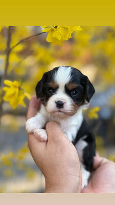 Hey There, My name is Dexter! I am a very cute male Tri Colored Cavalier puppy! I was born on June 2...