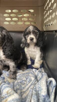 10 week old cocker spaniel puppies . 3 boys 2 girls. Boys- 2 black , 1 Merle with blue eyes. Girls- ...