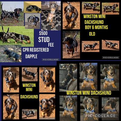 Offering Astro, my AKC chocolate and cream dapple miniature dachshund for stud for a special price o...