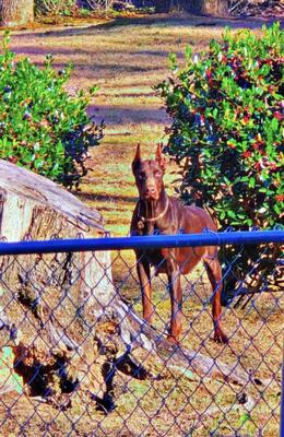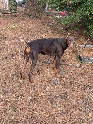 1.5 year old spayed red female Doberman