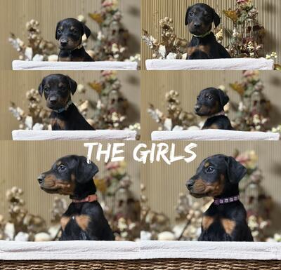 Very active and healthy about 12 weeks old standard black and rust females. Doberman that has her t...