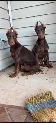 I have twin Doberman Pinscher puppies currently 12 weeks old ears cropped and standing. Current on v...