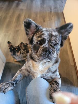 4 year old frenchie. Very sweet and well behaved. Not spayed...