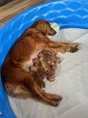 Just born! Beautiful red golden pups. Males and females will be ready for their forever homes around...