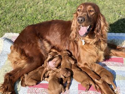 AKC Irish Setters Born May 30, 2025 Available July 25, 2025 5 males 4 females Parents are ...