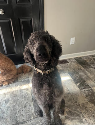 Rehoming a medium sized black female labradoodle. She is about 40 lbs. Fully potty trained, gets alo...
