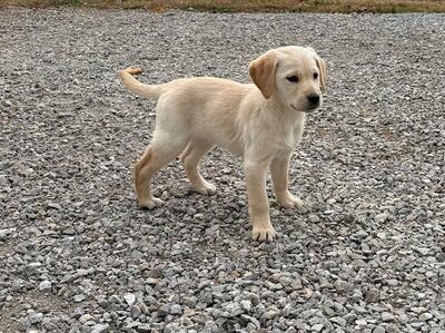 We have 6 beautiful Goldador puppies available! These puppies were bred from our yellow English Lab...