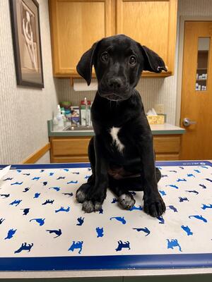 Hello! This is Dixie, a 15 week old lab puppy. I found her on the side of the road with half of her ...
