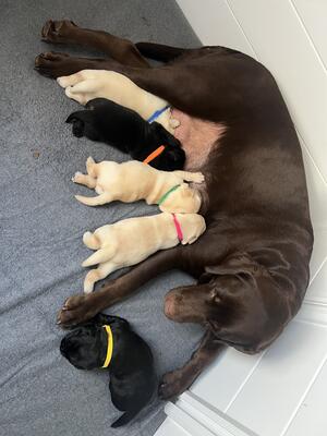 AKC Labrador Retriever Litter Announcement Born: October 10, 2025 Puppies: 2 Chocolate Males, 3 Bl...